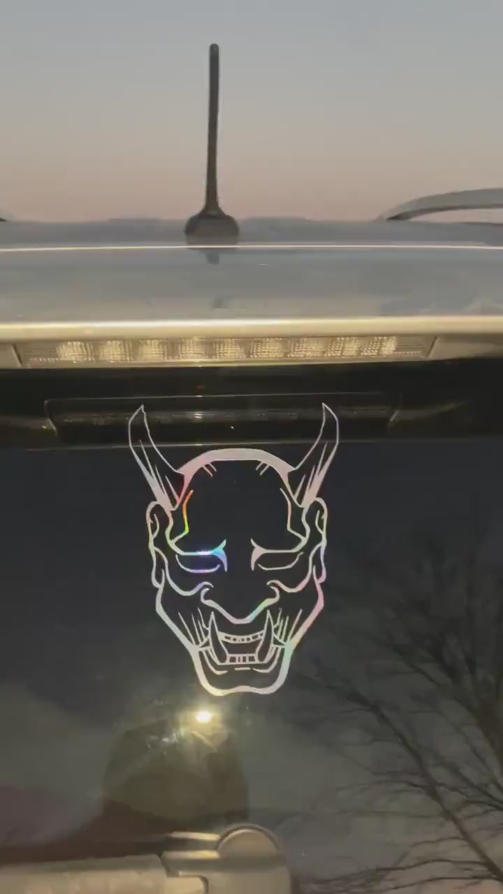 Make your car stand out with our Oni Mask decal, now available in the trendy colors of Oil Slick, Reflective, Pearlescent, and Holographic Glitter. This unique design features the traditional look of an Oni, a demonic figure from Japanese folklore, complete with horns, fangs, and a fierce expression. Made from high-quality vinyl, our decal not only adds style to your car but also protects it from scratches and weather damage.